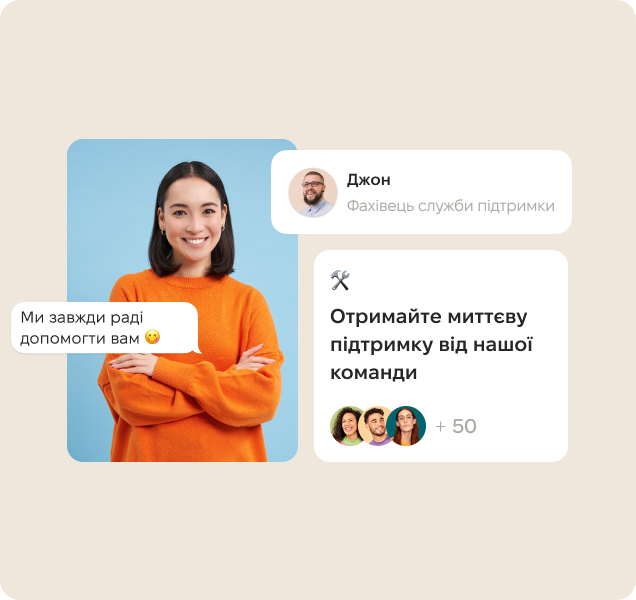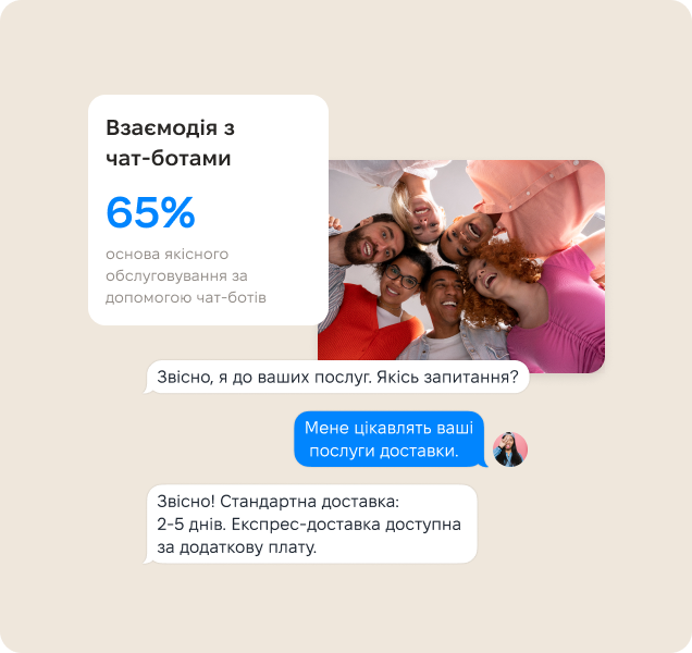 Розмістіть бота на вашому сайті або спрямовуйте на нього клієнтів. Бот відповідатиме на типові запитання, а менеджери в режимі реального часу матимуть доступ до всієї історії спілкування.