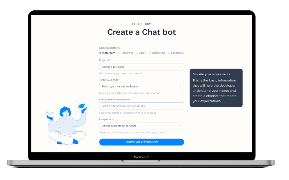Щоб розпочати створення власного чат-бота, заповніть форму. Втілимо ваші ідеї в реальність.