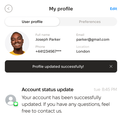 Enable your audience to stay up-to-date with changes and updates to their account, including balance, subscription status, and any other important information to keep them informed.