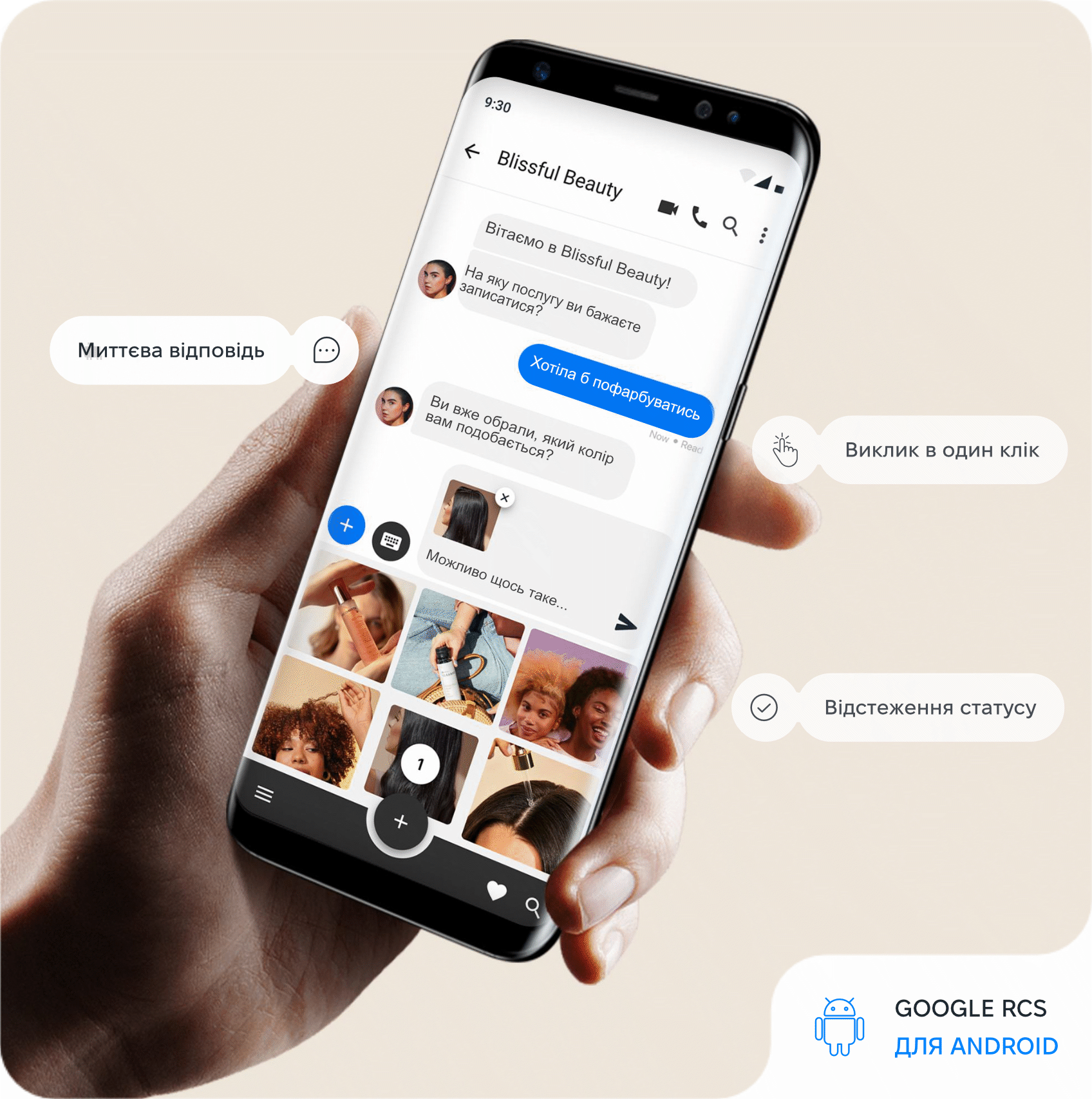 З RCS немає потреби в додаткових застосунках та завантаженнях — просто використовуйте можливості вбудованого месенджера пристроїв клієнтів, щоб отримати доступ до розширених функцій і покращити ваше спілкування.